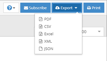 Enhanced Reports support exporting to PDF, CSV and Excel. In addition, if you want to do something more complex with your data programmatically, we also support advanced exports to XML and Json.