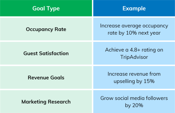 Ambitious goals are the only way you’ll reach your hospitality gold. It takes diligent work to achieve them and your lodging business must define specific, measurable goals to guide their efforts. Here are some examples:
