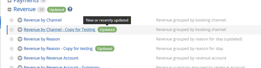 To let users know when a new report has been released or an existing report has changed, there are now some UI hints to let users know there is new/updated report. That looks like this: