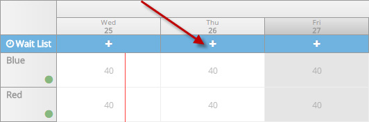 Navigate to the arrival date and click the “+” icon to add a guest to the waitlist.