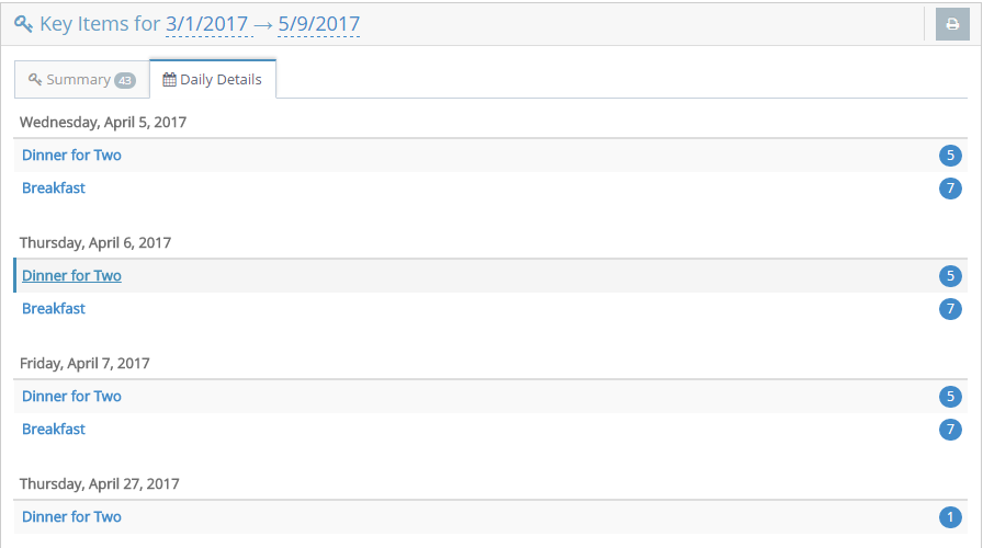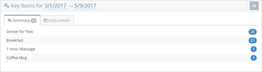 There is also a tab to see the specific daily break down of those same items. It displays like this: