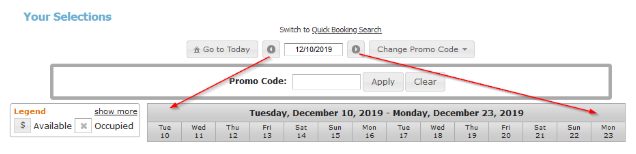 Intuitive Navigation on the Booking Engine 2-week Calendar