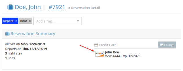 Another common request we’ve had is to show the summary information (credit card type and last 4 digits) about the Credit Card that a guest has used to confirm their reservation.