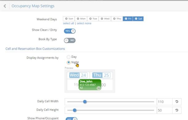 For existing users reservations will still display by "Day" on the Occupancy Map rather than by "Night". Because that change might feel pretty dramatic for existing users, they can choose to opt-in to that feature when they are ready to make that change.