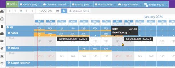 Finally, some of this styling work did bleed over onto the Quick Rate Editor map. The tooltip styling has been updated to match the tooltip styling in the rest of rezStream Cloud, the selection styling uses the new dashed outline approach, and the start and end date tooltips also appear there: