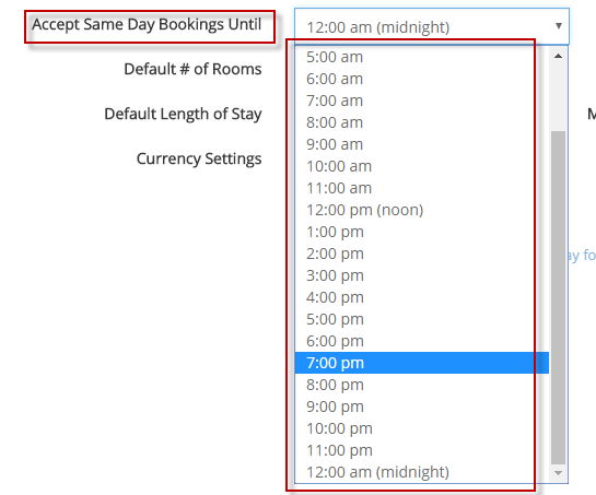 RezStream’s booking engine now allows for same-day online bookings. For those of you who don’t operate a front desk staff 24/7 but still rely on same-day bookings, this feature is for you! You now have the ability to set a cutoff time for same-day online bookings. As an example, if your staff leaves the front desk at 7:00 PM, you can now set it so that the booking engine no longer allows bookings for the remainder of the day.