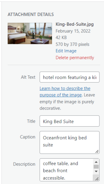 An example of using alt text for images on your website would be to add room descriptions to your images in your booking engine: